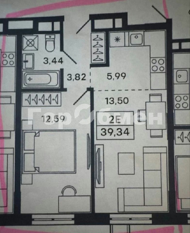 Общая: 39,4 м2